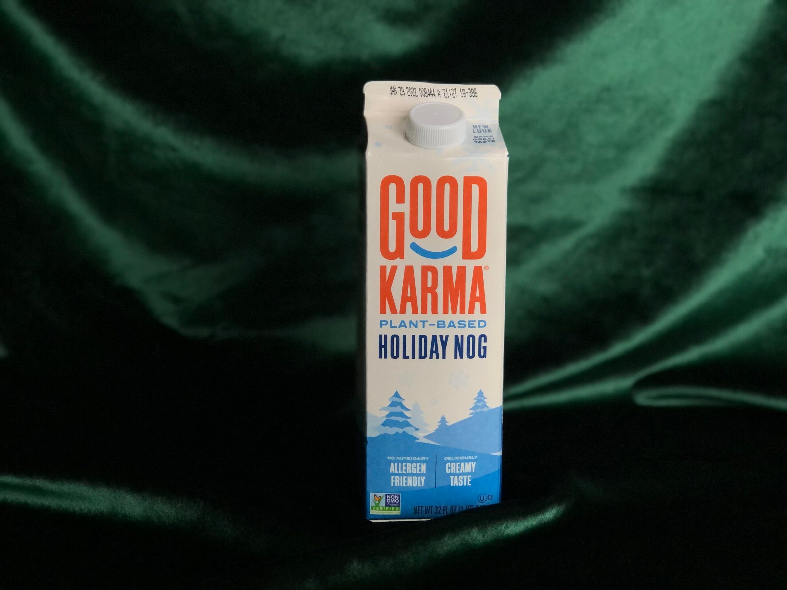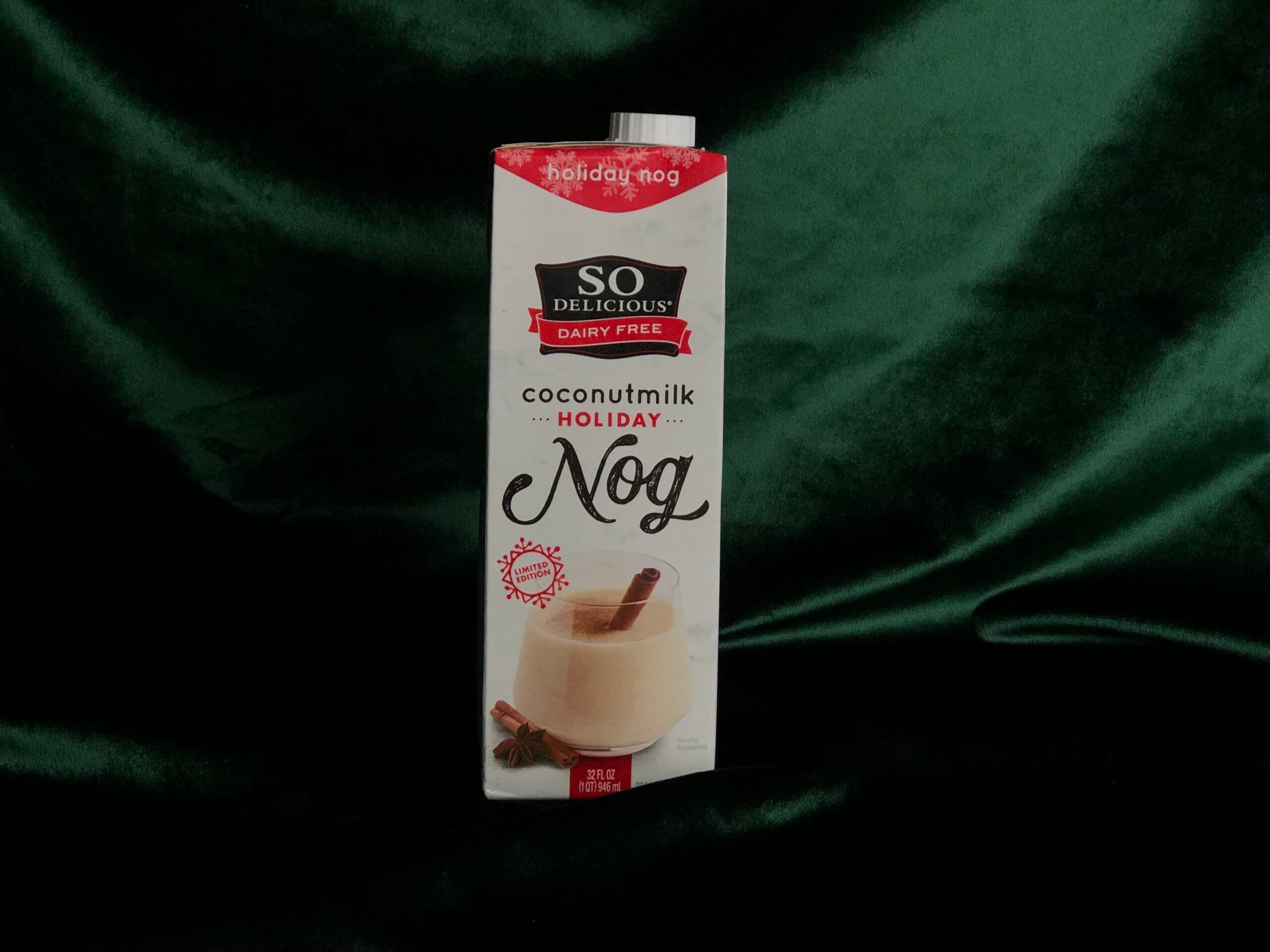 Being married to someone with a nut allergy, I know it can be a bummer when so much plant-based dairy ends up being made from nuts. If you’re not able to do the Almond Breeze due to allergy or preference, this seasonal Trader Joe’s option is my second choice in the nog-off. As soon as you open the carton, you’ll get a wallop of nog aroma and it looks great in the cup with an extra-thick texture and deep creamy color showing lots of nutmeg specks. Despite all those promising elements, this one came in second place for me due to underwhelming flavor; not bad, just a bit faint.