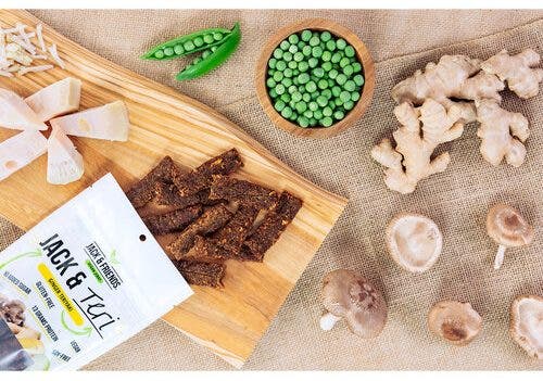 More proof that jackfruit is the chameleon of the fruit world. This plant-based jerky has a nice ginger zing.